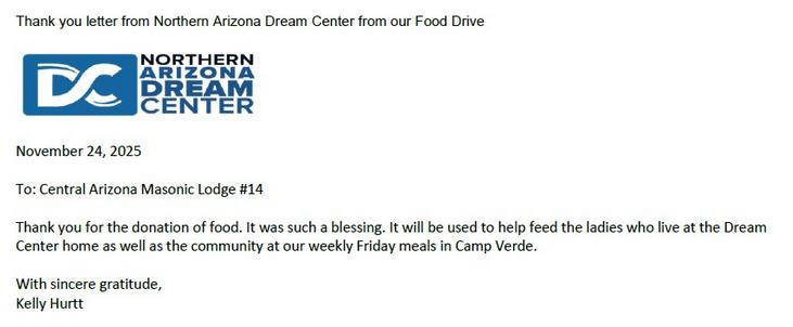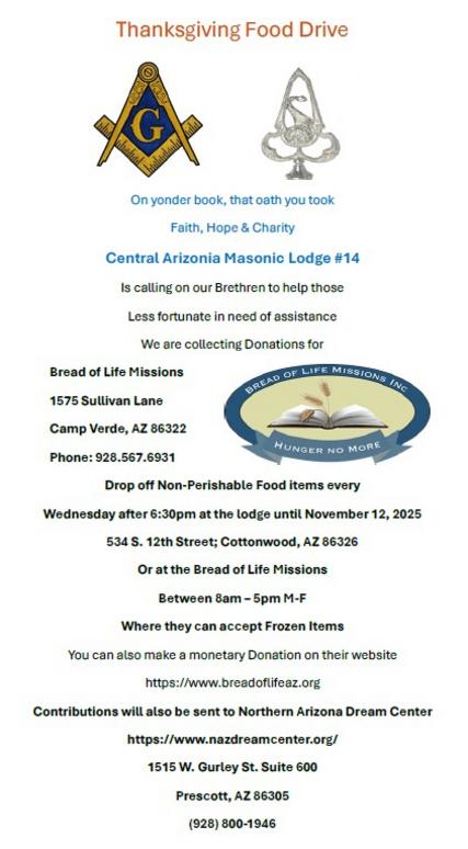 We would like to extend our heartfelt gratitude to everyone who contributed to our recent food drive in support of the Bread of Life Mission and the Northern Arizona Dream Center. Your generosity and compassion have made a meaningful difference in the lives of those in need within our community.