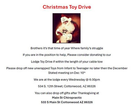 I want to extend my heartfelt thanks to all of my brothers for your generous support and contributions to our toy drive. Your kindness and commitment have made a meaningful difference in the lives of children in our community.
