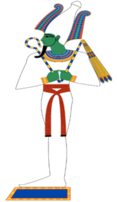 the daily journey of the sun, and the triumph of order over chaos. He is often portrayed with green skin (representing fertility